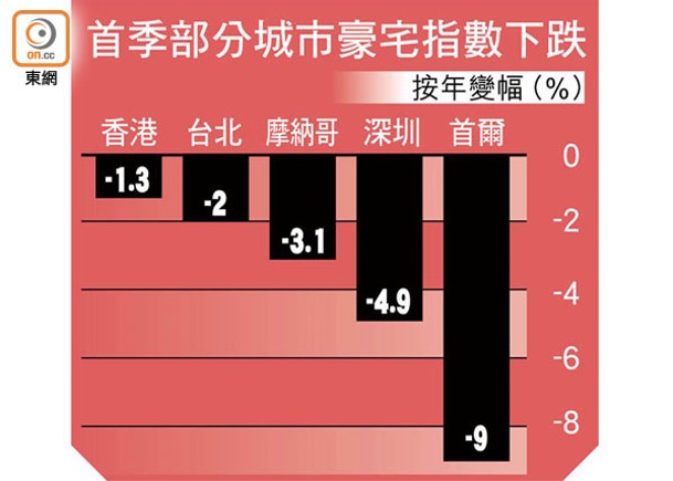 全球豪宅樓價14年首跌 港回落1.3%