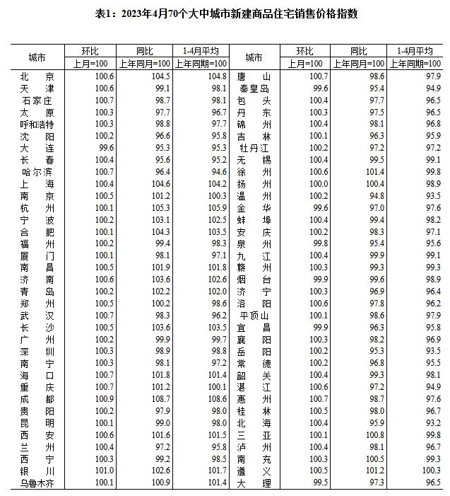 中新網5月17日電 國家統計局網站17日發佈2023年4月份70個大中城市商品住宅銷售價格變動情況,國家統計局城市司首席統計師繩國慶解讀表示,2023年4月份,70個大中城市中商品住宅銷售價格環比上漲城市個數減少,同比上漲城市個數增加。70個大中城市商品住宅銷售價格環比整體漲幅回落、二手住宅環比漲幅回落更為明顯,各線城市商品住宅銷售價格同比上漲或降勢趨緩。
