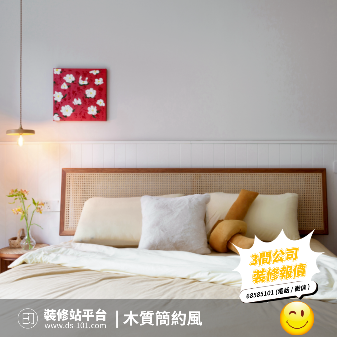 主臥背景牆的木頭材質營造出的氛圍能夠帶來安全感,配以籐編材質的床、柔軟的布藝、溫馨的吊燈,共同糅雜散發出度假般的愜意感受。紅色的裝飾畫熱情而濃烈,代表著屋主對生活的的熱情,畫中的花與床頭的植物相互呼應。