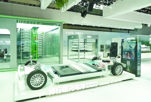 在中國國際供應鏈促進博覽會智能汽車鏈展區拍攝的寧德時代展位(新華社)