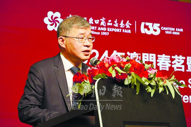 中國對外貿易中心、中聯辦經濟部貿易處、澳門貿易投資促進局主辦的“二○二四年澳門春茗暨第一百三十五屆廣交會推介會”昨舉行。中國對外貿易中心主任儲士家表示,今年廣交會將以服務高質量發展、推進高水平開放為主題,四月十五日至五月五日在廣州分三期舉辦,希望澳門企業積極參會參展“引進來、走出去”。目前已有十八家澳門地區的企業報名參展。