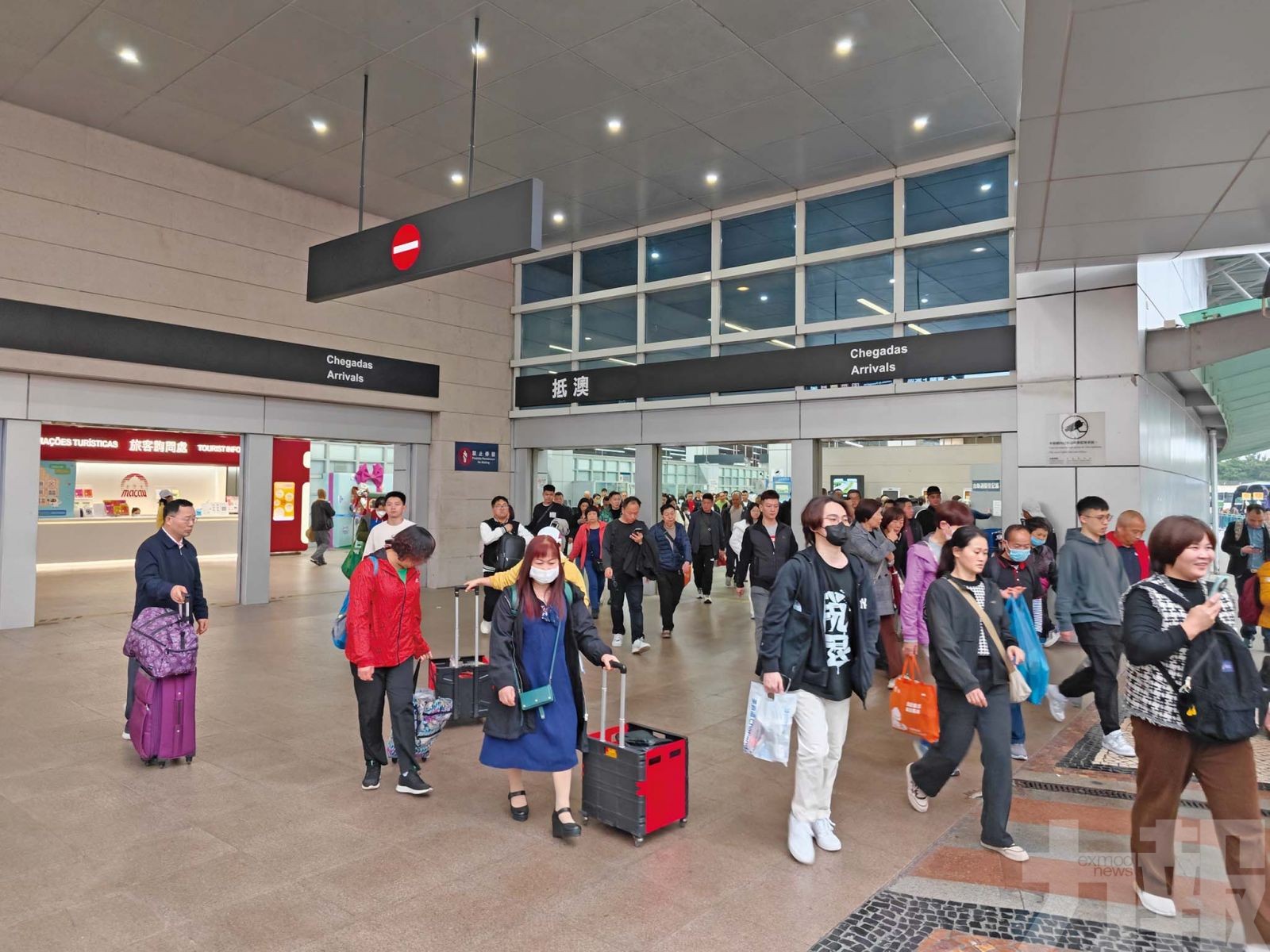 元旦假期截至昨晚9時,治安警公佈本澳各口岸共錄得58萬8,906人次出入境,當中入境旅客10萬4,975人次,主要經關閘口岸,其次是經港珠澳大橋口岸及橫琴口岸入境。整體通關過程有序順暢。