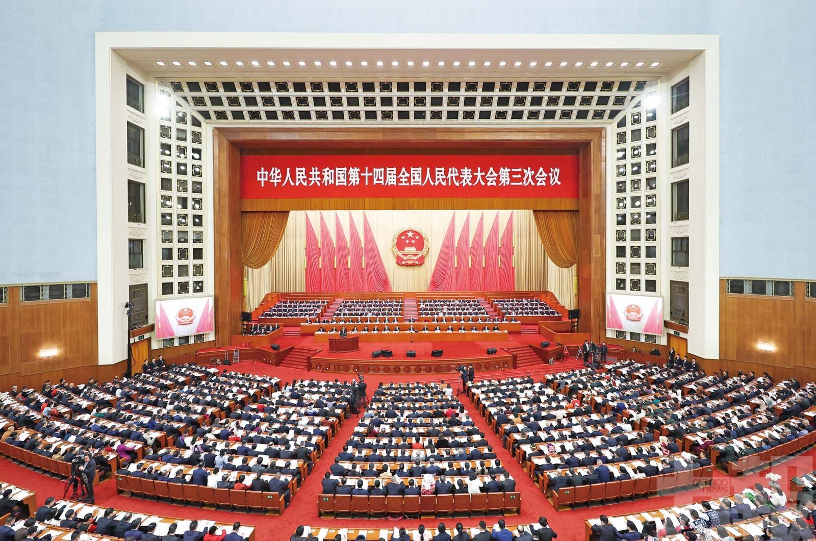 3月5日,十四屆全國人大三次會議開幕會在北京人民大會堂舉行。(新華社圖片)