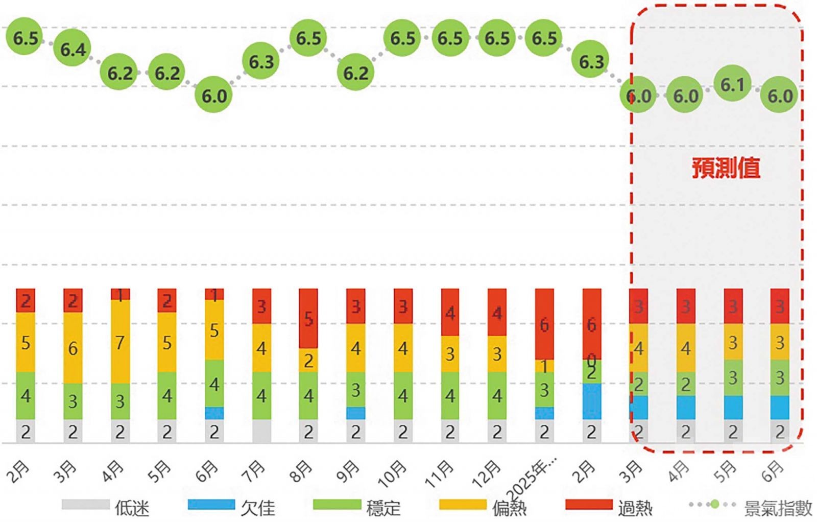 綜合考慮上述內外部因素,研究小組小幅下調本澳2025年4月至6月期間的經濟景氣指數預測,不過整體經濟景氣仍處於「穩定」水平。