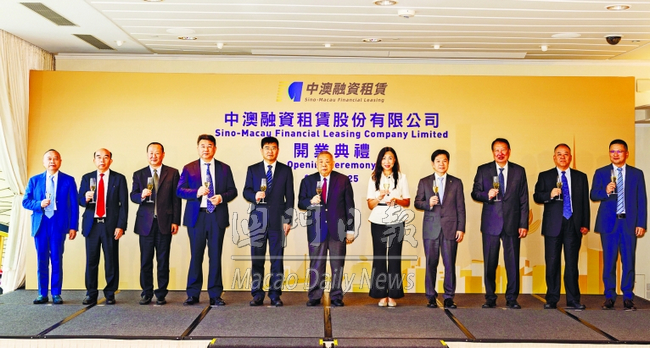中澳融資租賃日前舉行開業典禮,嘉賓在台上祝酒。