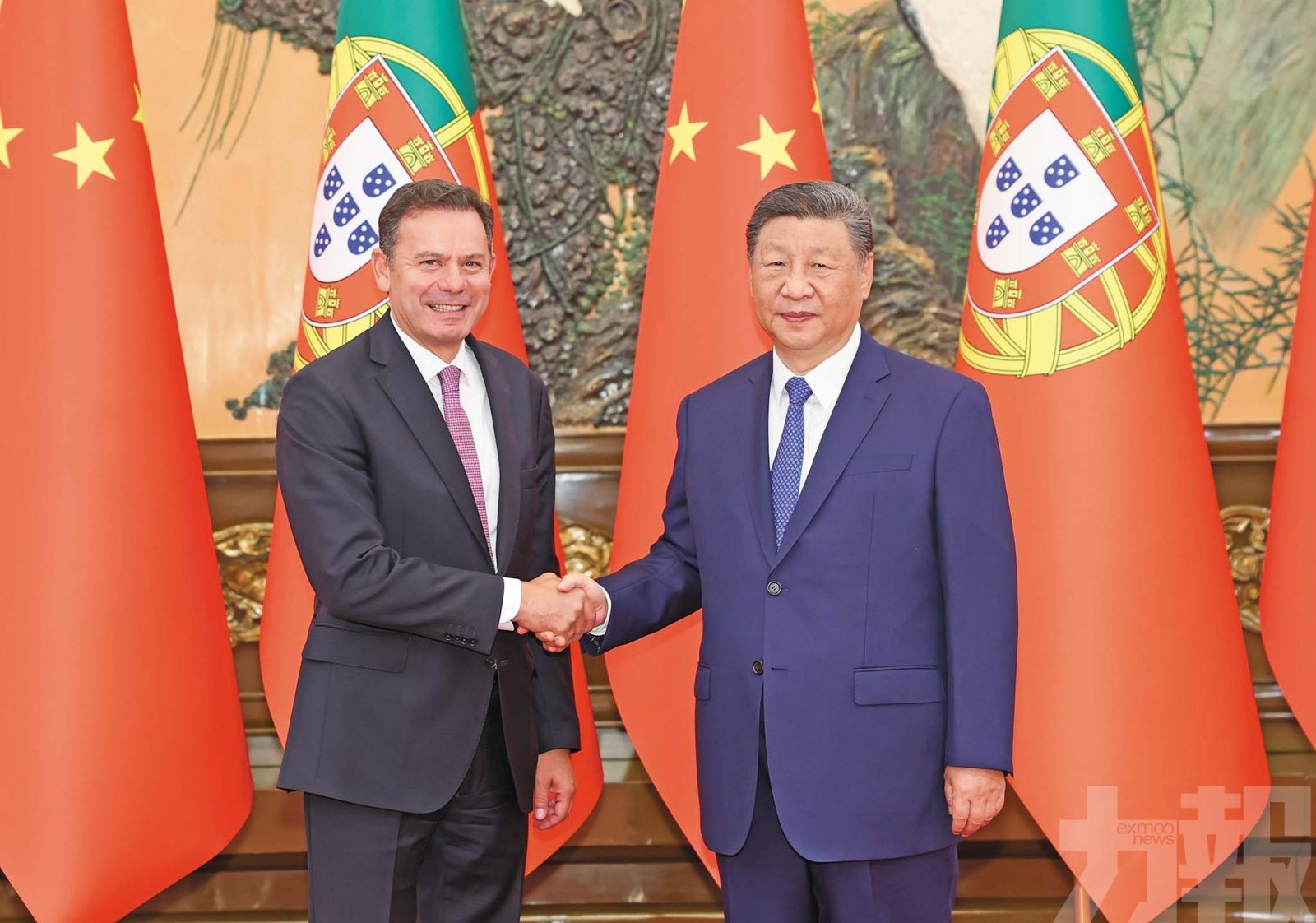 國家主席習近平與葡萄牙總理蒙特內格羅親切握手。(新華社圖片)