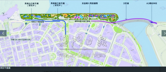 上述五項目的前期工作,拆成三項招標,分別是“鄰近馬場北大馬路灘塗整治基建項目和A區連接橋工程”,“鄰近馬場北大馬路灘塗整治泵站和休憩區建造工程”及“灘塗整治區地下停車場建造工程”,均已完成評標、判標。前兩項的編製計劃、工料測量、項目管理服務,分別都是由PAL 亞洲顧問有限公司、特納唐遜(澳門)有限公司、奧雅納工程顧問中標。