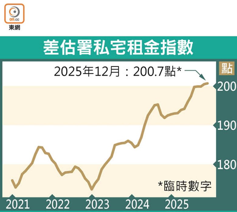 受政府放寬細價樓印花稅及息口向下刺激,本港住宅樓市重拾升軌,據政府最新公布的數字,去年12月私宅售價指數續漲,已連升7個月,為逾一年半新高;而2025年已累升約3.25%,扭轉連挫3年的頹勢,當中以中小型戶指數漲幅較大。市場普遍預期今年樓價上升約5至8%,個別更指可高達15%。