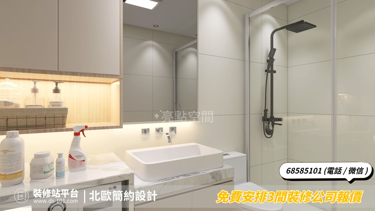 浴室設計方面,採用統一顏色的牆地磚,顯得簡約又能夠增加浴室內部的光線,讓整個空間更加通透明亮。